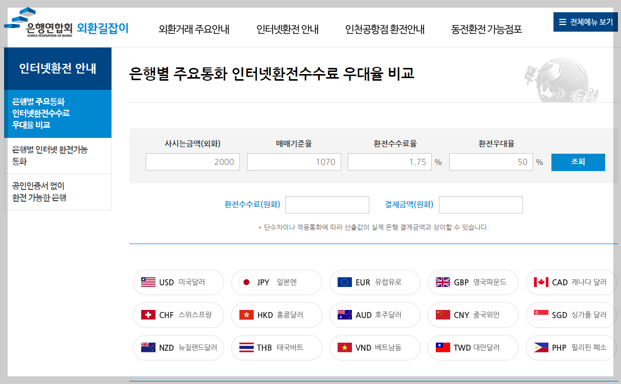 단순히 환율을 확인하는 것과 실제 환전할 때 적용되는 환전 수수료까지